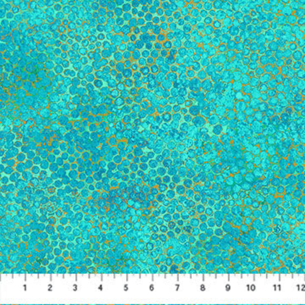 Approximately 3" x 3" sample swatch of 106/108 inch wide 100% cotton quilt backing fabric from the Shimmer Collection designed by Deborah Edwards for Northcott Studio in the color "Lagoon" SKU #B27897-66. This stunning non-metallic print will be perfect for the BackSide of your quilt and other projects!