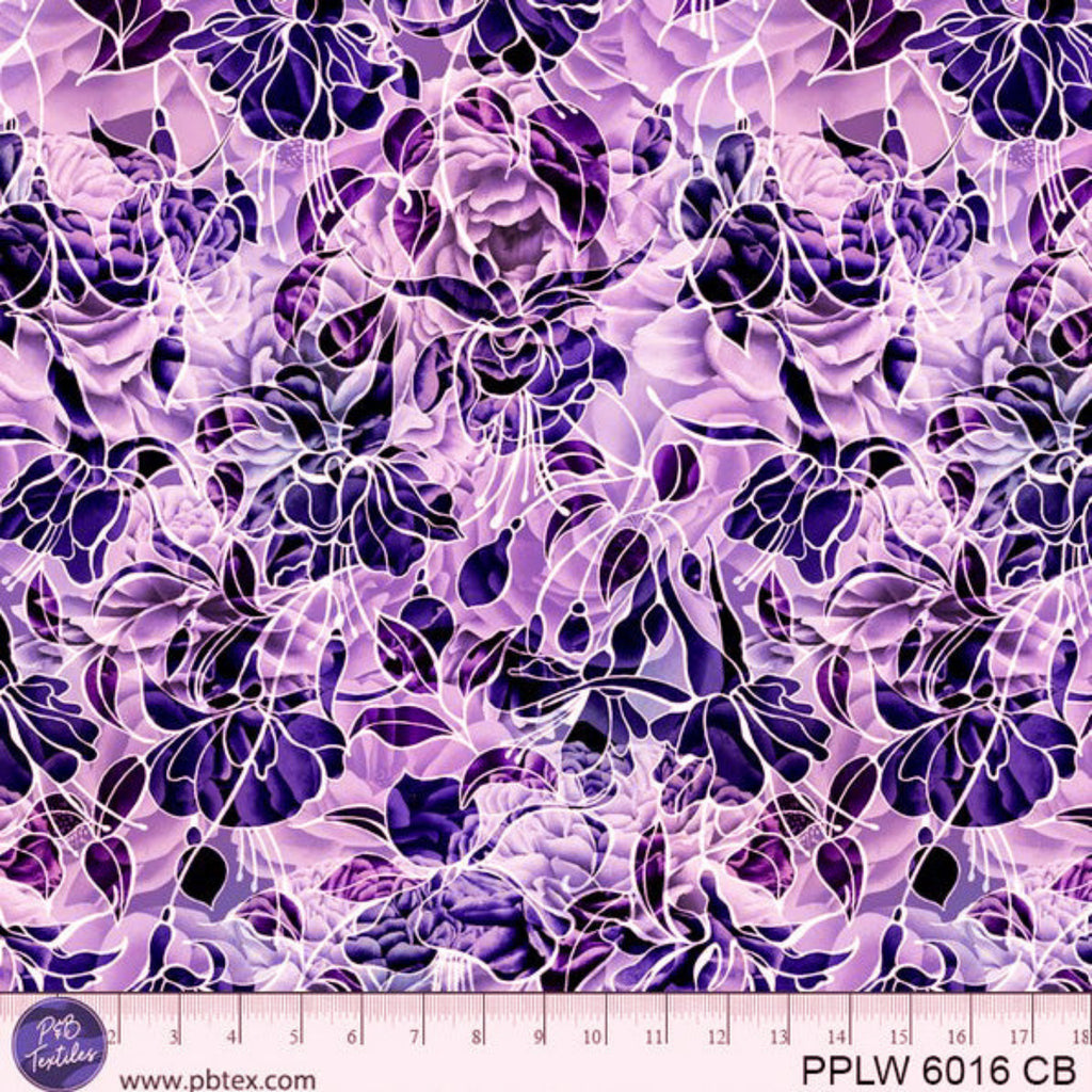 **Please allow for up to 8% shrinkage in the width.  Pre-washing is recommended in cold water and cool dryer**  108 inch wide 100% cotton quilt backing fabric from the Petal Play Collection designed by BellaSylDesign for P&B Textiles in the color "Purple" SKU#PPLW 6016 CB.  Perfectly seamless for the BackSide of your quilts and other projects!