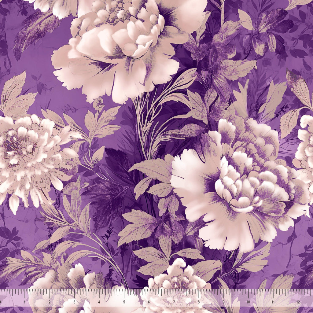 **Please allow for up to 8% shrinkage in the width.  Pre-washing is recommended in cold water and cool dryer**  118" wide 100% cotton quilt backing from the Panorama Prints Le Fleur Collection in the Large Floral pattern designed by Sasha for QT Fabrics in the color "Purple" SKU #2099-31810-V.  Perfectly seamless for the BackSide of your quilts and for borders, bindings, and other projects!