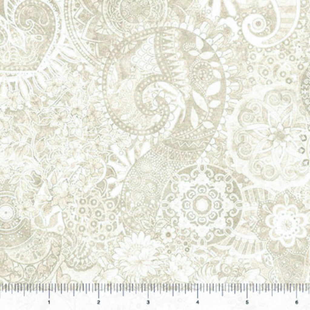 Approximately 3" x 3" sample swatch of 108" wide 100% cotton quilt backing from the Mystique Collection designed by QT Fabrics in the color "Birch" SKU #1999-31497-E108.  Perfectly seamless for the BackSide of your quilts and for borders, bindings, and other projects!