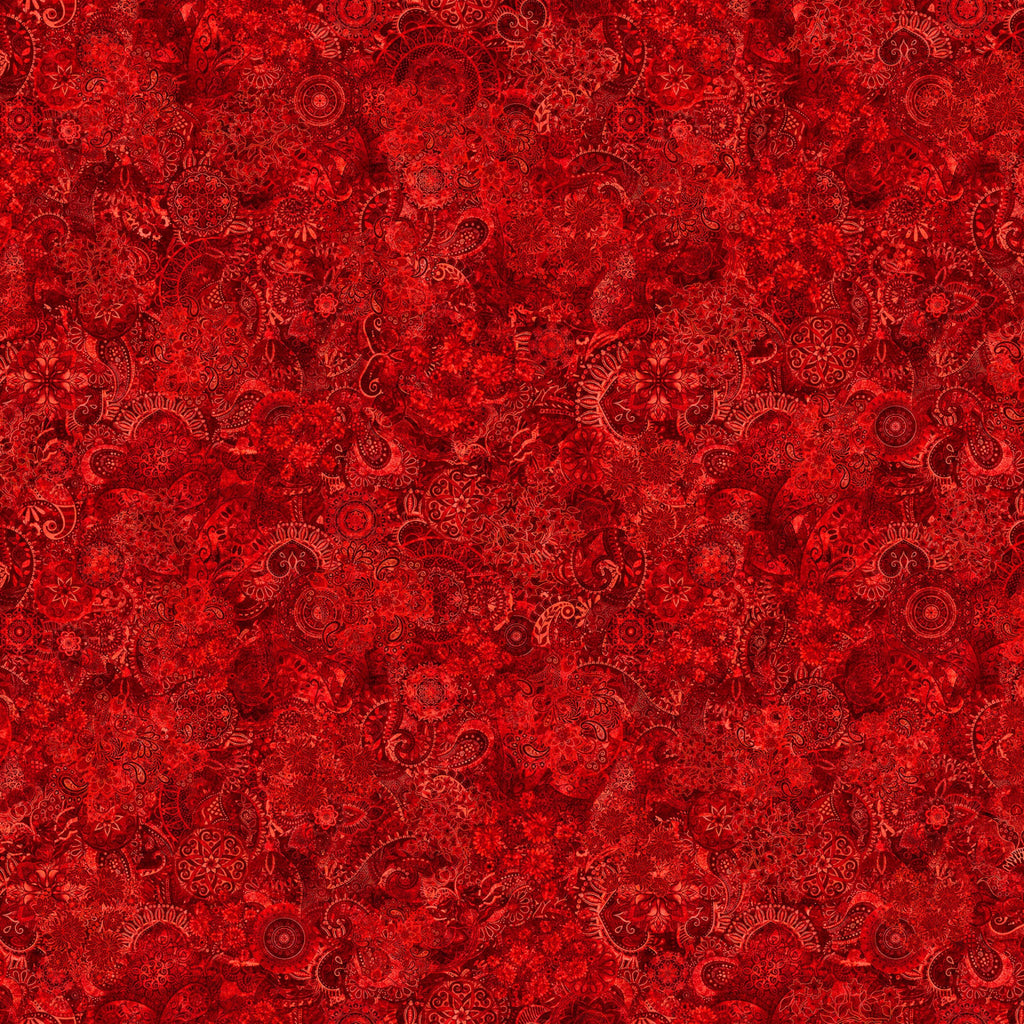 **Please allow for up to 8% shrinkage in the width.  Pre-washing is recommended in cold water and a cool dryer**  108" wide 100% cotton quilt backing from the Mystique Collection designed by QT Fabrics in the color "Red" SKU #1999-31497-R108.  Perfectly seamless for the BackSide of your quilts and for borders, bindings, and other projects!