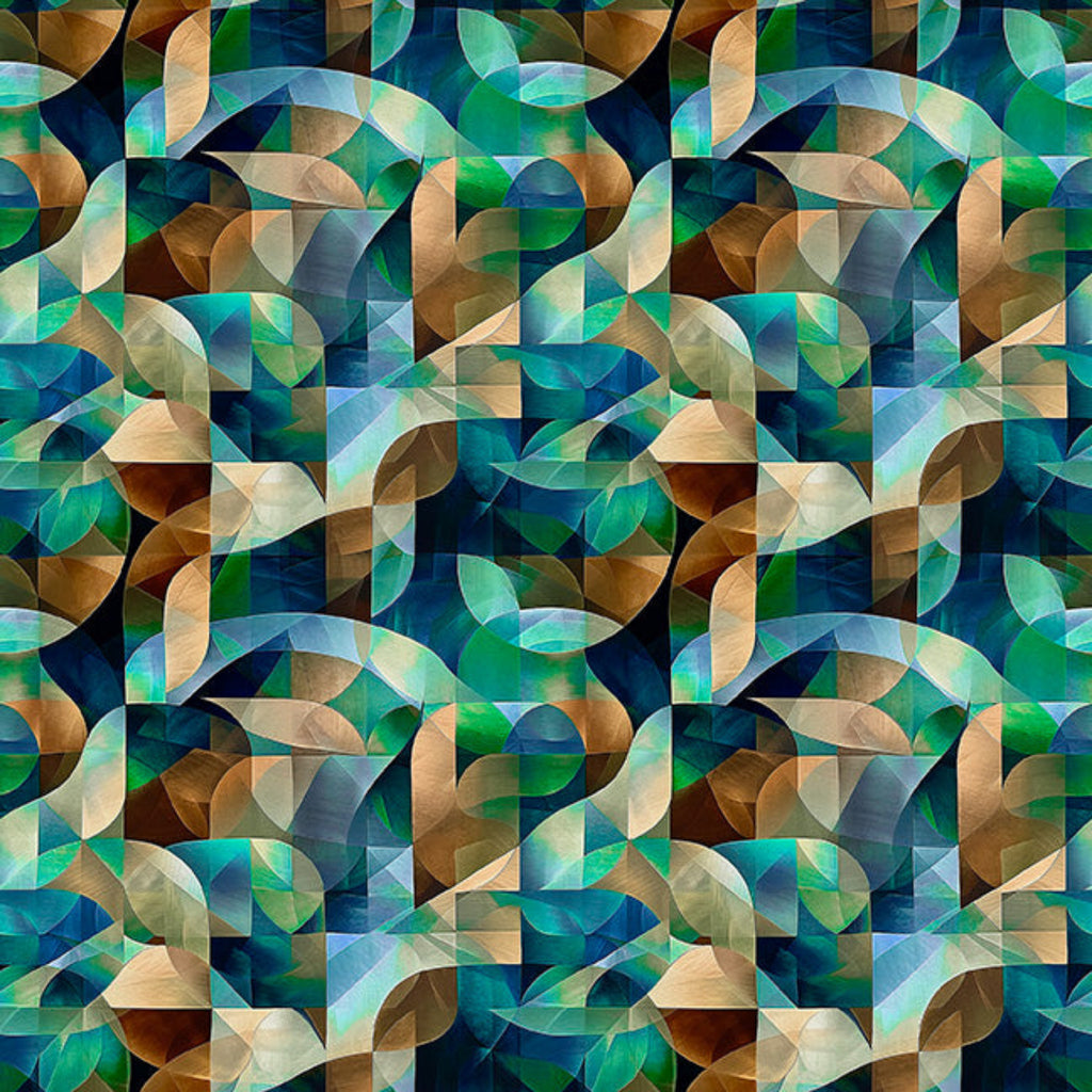 **Please allow for up to 8% shrinkage in the width.  Pre-washing is recommended in cold water and a cool dryer**  108" wide 100% cotton quilt backing from the Solstice Collection in the Kaleidoscope Geo print designed by Morris Creative Group for QT Fabrics in the color Teal SKU #1999-31231-Q108.  Perfectly seamless for the BackSide of your quilts and for borders, bindings, and other projects!