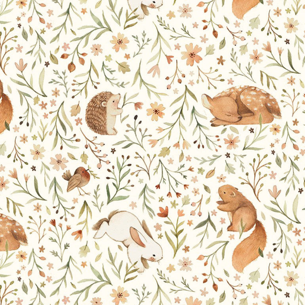 • 1/8 Yard - 108" Animal Floral Wide Quilt Back Cream